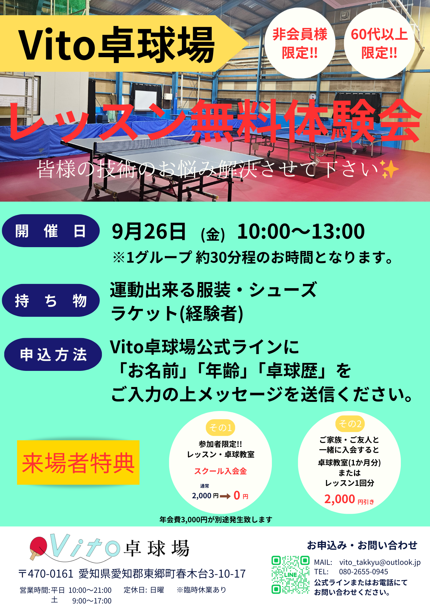 是非この機会にVito卓球場のレッスンを体験しに来てください‼️
